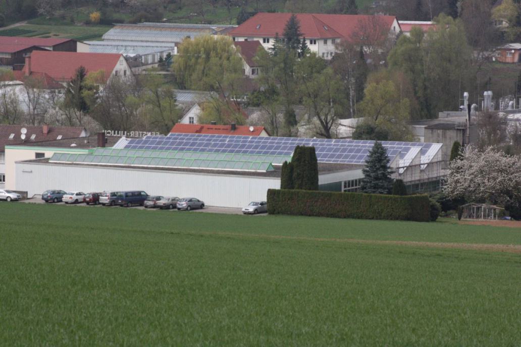 Wir haben auf unserem Hallendach eine 61,18 kWp-Anlage in Betrieb genommen, welche der Umwelt pro Jahr über 40 Tonnen CO2 erspart. Die Anlage wurde am 28.05.2010 in Betrieb genommen