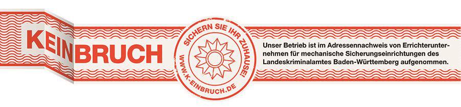 Wir sind aufgenommener Handwerksbetrieb im aktuellen Errichternachweis „Mechanische Sicherungseinrichtungen" des Landeskriminalamtes Baden-Württemberg.