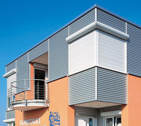 RA.2 ist das neue ROMA Basis-Aufsatzsystem mit allen Merkmalen eines modernen Rollladen-Fertigelements. Die robuste Konstruktion ist speziell für den Einsatz im Objektbereich entwickelt worden. Kastenverkleidung und Führungsschienen werden auf Wunsch in allen Farben der ROMA ColorCollection geliefert. Diese einzigartige Collection beinhaltet 350 RAL-, NCS- und Sonderfarben; darüber hinaus können alle fassadentauglichen Farbenwünsche umgesetzt werden. Zudem besteht die Möglichkeit, den sichtbaren Bereich des Rollladensystems in der dem Fenster entsprechenden Holzfolierung zu versehen. So ist dann alles wie aus einem Guss.